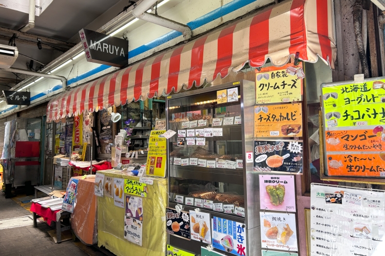 全長約80mのアーケードの下には、ラーメン屋、沖縄料理店、マグロ屋、ジュエリーショップ、占い鑑定所など、個性豊かなお店が軒を連ねています。