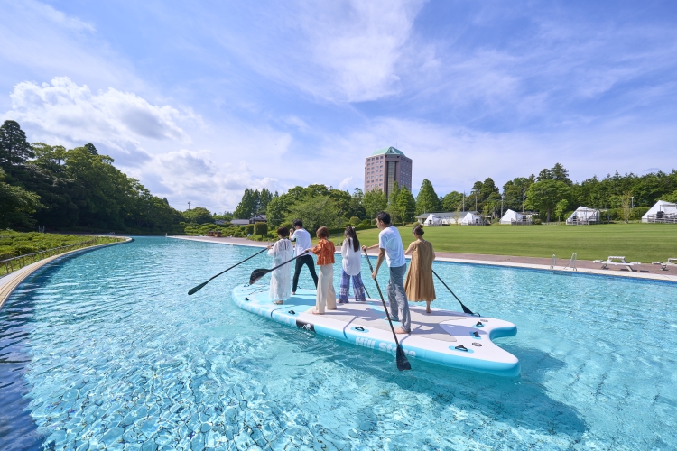 3月20日(金・祝)から5月6日(水・祝)までの期間、ウォータースポーツの新定番「BIG SUPクルージング」をご案内いたします。SUPは、Stand Up Paddleboard(スタンド アップ パドルボード)の略称で、サーフボードの上に立ち、パドルを漕ぎながら水上を進む爽快感あふれるウォーターアクティビティです。愛犬とも一緒に乗ることが可能です。