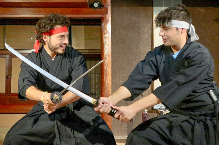 嶋村さんが仕事をする中で出会った侍俳優さんや、剣のパフォーマーさんによって行われる体験&ショーでは、実際に着物を身にまとうことで、侍としての心得を身につけます。