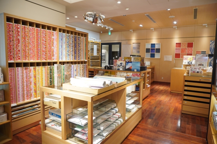1階の店舗では、全国から集められた約500種類もの手漉き和紙が並びます。気軽に和紙を楽しめるレターセットやご朱印帳のほか、色鮮やかな友禅紙が人気を集めています。