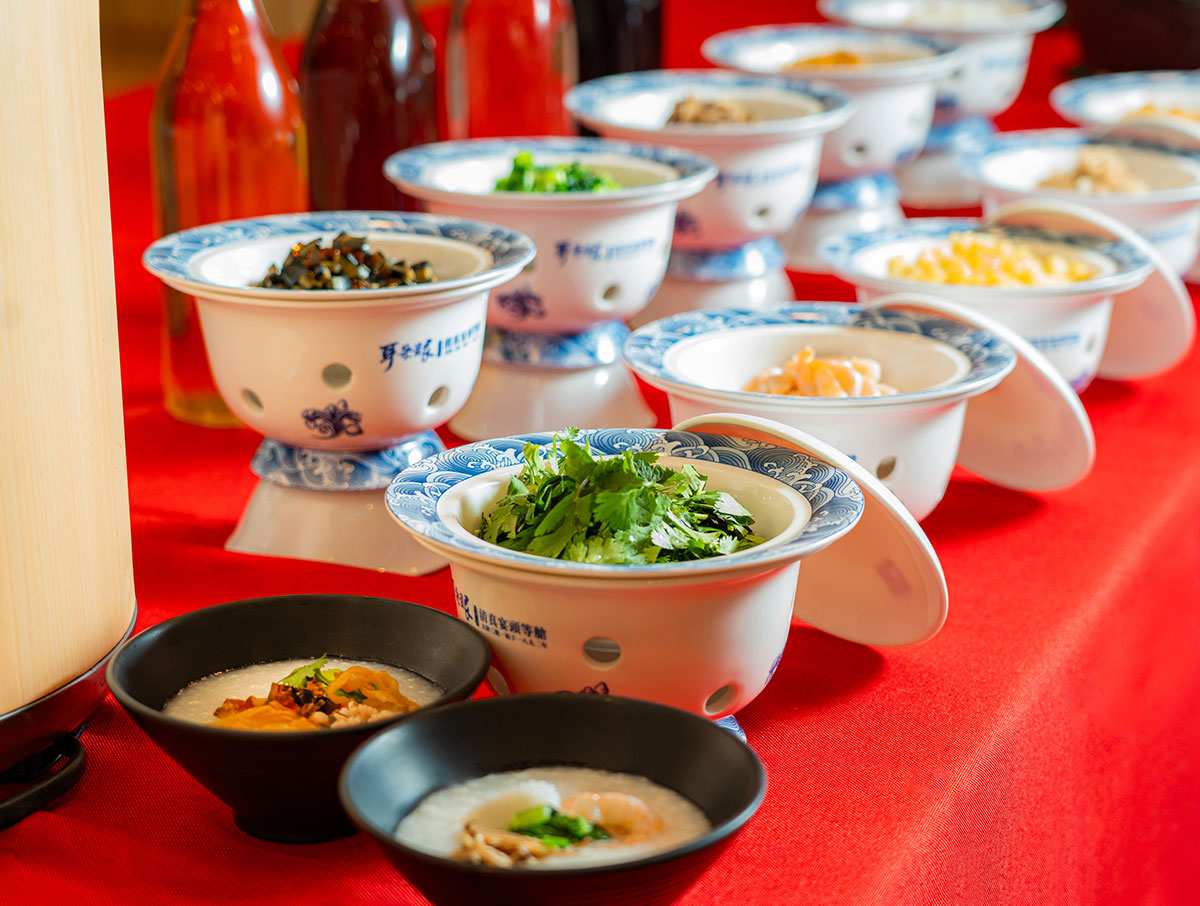 お客様ご自身でおつくりいただける中華がゆやライブキッチンでご提供するラーメンなど、医食同源をキーワードとした朝からたべて体に沁みるお料理をご用意しております。