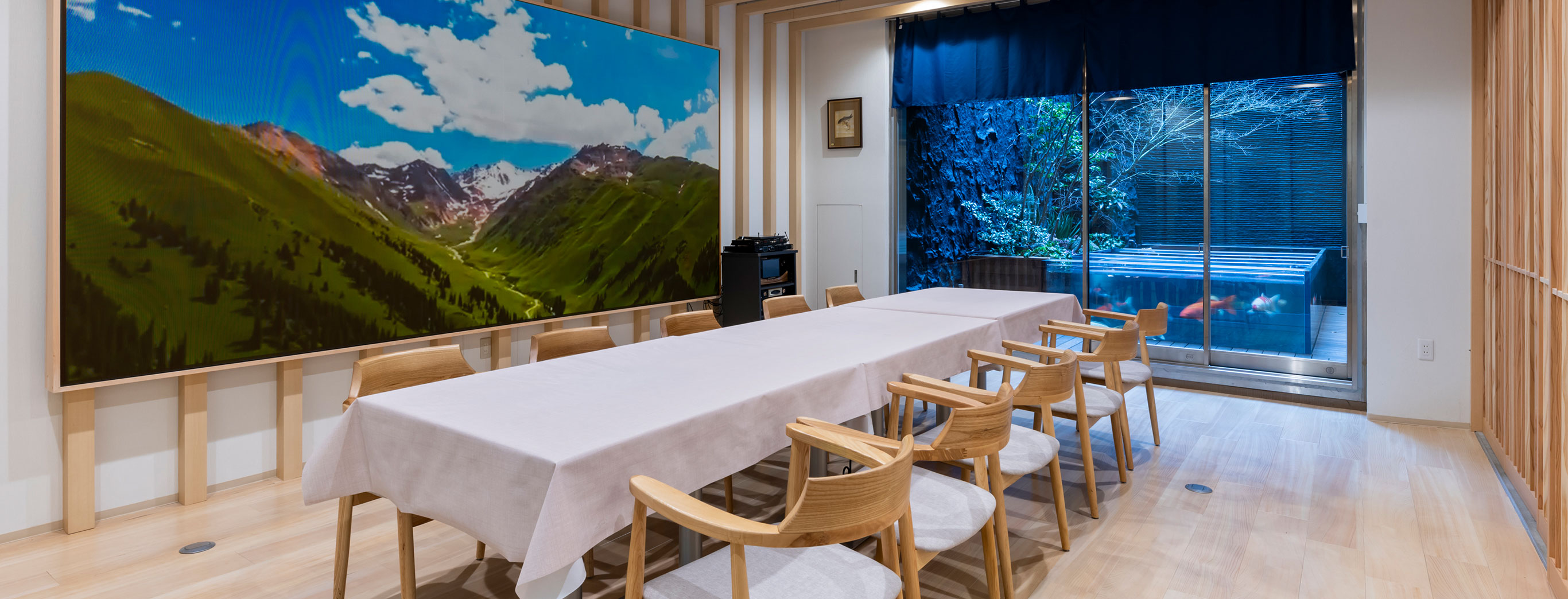 中庭を優雅に泳ぐ錦鯉が特徴の「Food Salon 錦鯉」では、